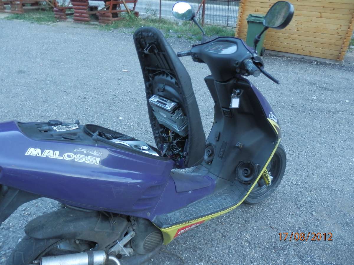 stojącego obok skutera dobiega głośna, skoczna bałkańska muzyka.
